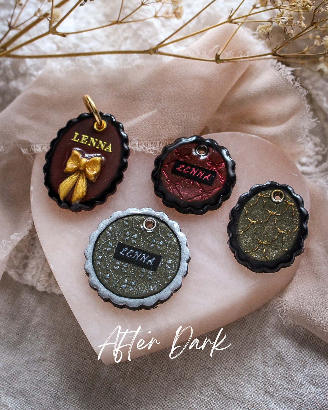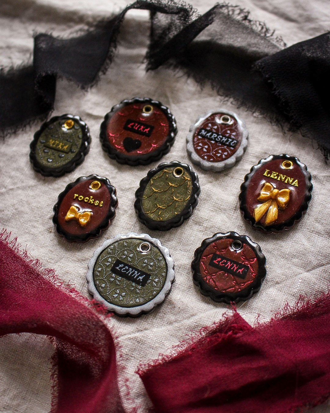 Please allow for small imperfections and differences in the tags as they are handmade. They will not compromise the integrity of the tag. The tags are water resistant, NOT water proof and may show wear over time and heavy use. They are also NOT chew proof, so please supervise your pet while the tag is in use.