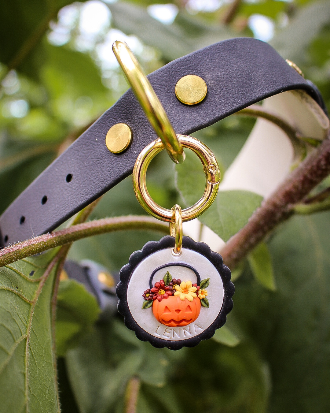 Please allow for small imperfections and differences in the tags as they are handmade. They will not compromise the integrity of the tag. The tags are water resistant, NOT water proof and may show wear over time and heavy use. They are also NOT chew proof, so please supervise your pet while the tag is in use.